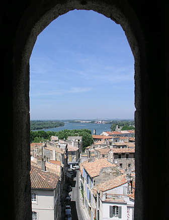 Von der obersten Galerie hat man einen wunderbaren Ausblick über die Stadt, hier über die von Norden her fließende Rhone.