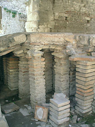 Ziegeltürmchen, die die Hypokaustheizung bildeten,