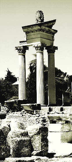 Bauten von Basilika, Thermen und Tempeln bebaut wurde.