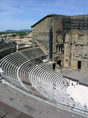 Blick auf den westlichen Teil der Bühnenwand und der Sitzränge